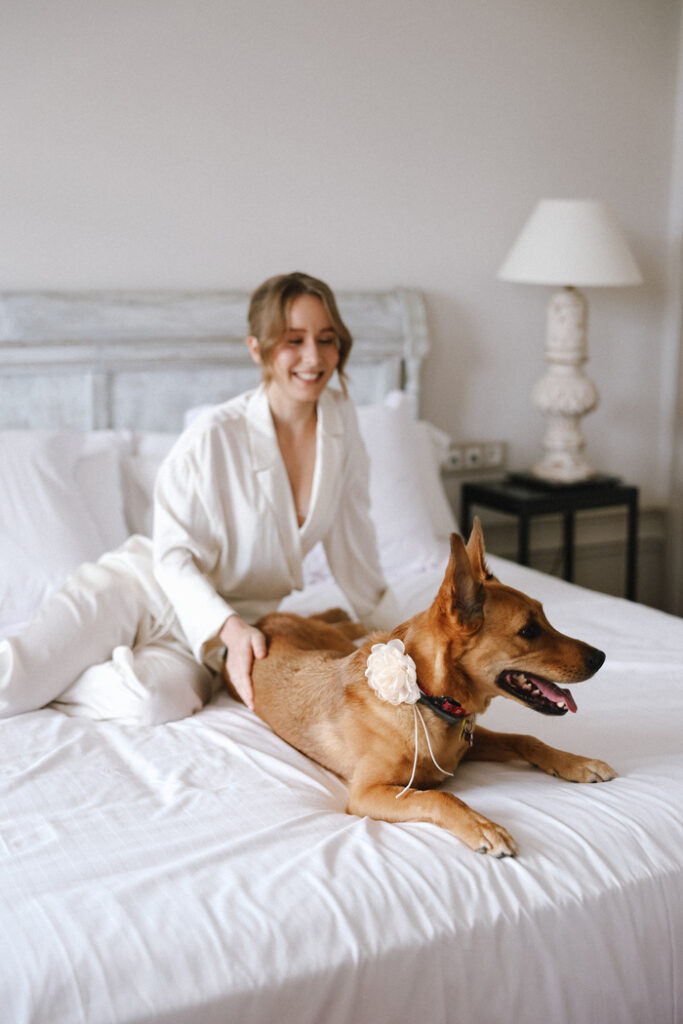 So we found a dog-friendly venue, and even organized a special person who took care of all the dogs during the day — including dogs of the guests — so everyone could relax and truly enjoy the wedding.